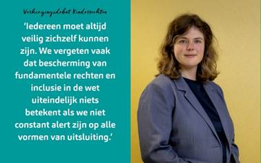 “Iedereen moet altijd veilig zichzelf kunnen zijn. We vergeten vaak – vanuit gemakzucht, gewoonte of vooroordelen – dat bescherming van fundamentele rechten en inclusie in de wet uiteindelijk niets betekent als we niet constant alert zijn op alle vormen van uitsluiting.”