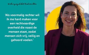 “Als voormalig rechter wil ik me hard maken voor een rechtvaardige overheid die naast de mensen staat, zodat mensen zich vrij, veilig en gehoord voelen.”