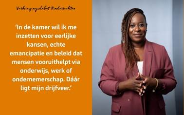 “Als wethouder zie ik dagelijks wat beleid in de praktijk betekent voor mensen. In de kamer wil ik me inzetten voor eerlijke kansen, echte emancipatie en beleid dat mensen vooruithelpt via onderwijs, werk of ondernemerschap. Dáár ligt mijn drijfveer.”